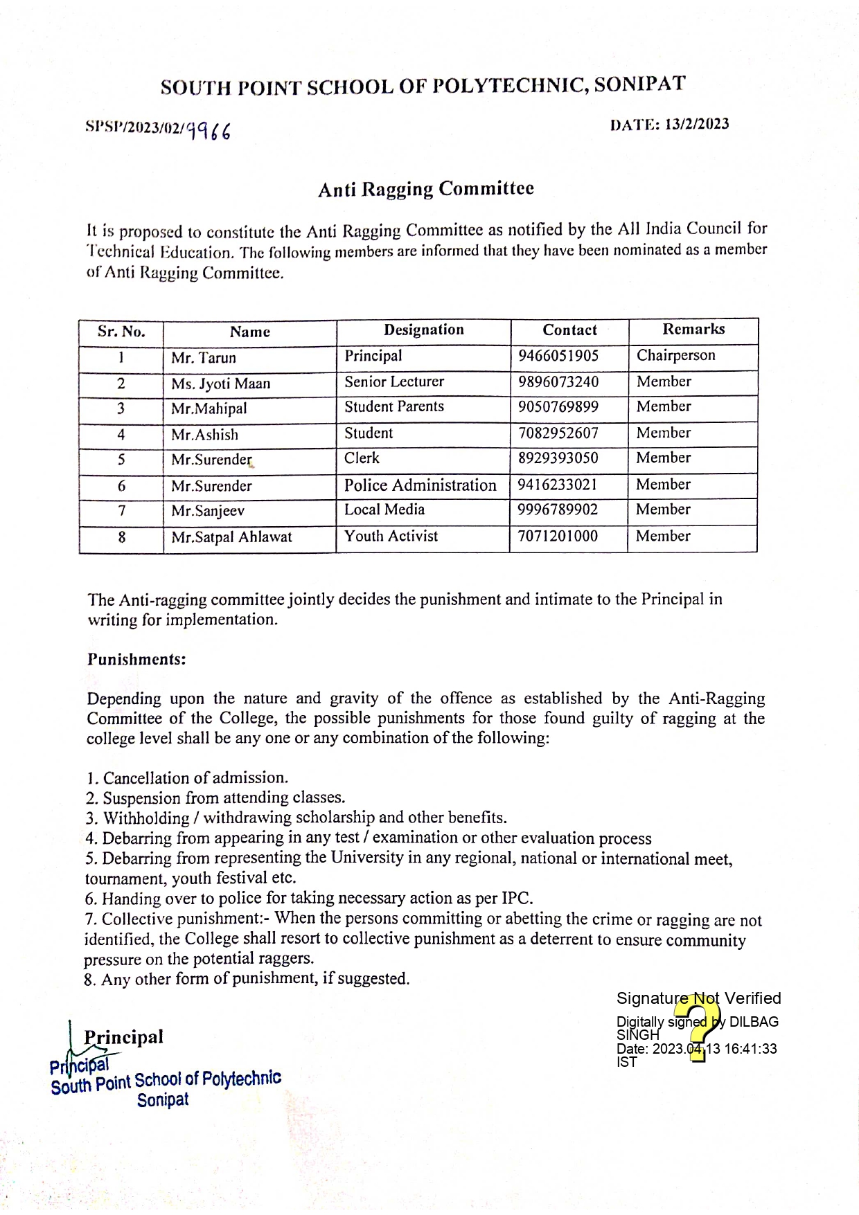 Anti Ragging Committee